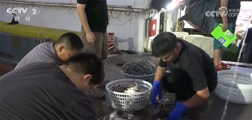 随着部分网具的开禁,大量的梭子蟹也被渔民们捕捞回港。在江苏盐城射阳港,进港的渔船从凌晨3点就开始卸货了,码头上停着一辆辆转运专用冷链车,装卸工人从船舱里把一筐筐肥美的梭子蟹通过传送带送到冷链车厢里,再起运到各地的海鲜市场批发售卖。据了解,这一船的梭子蟹捕捞量超过三万斤,码头的批发价格为每斤20—30元,市场零售价每斤40—50元。